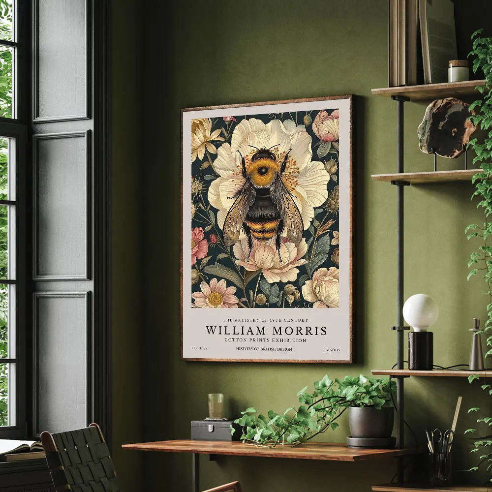 Retro William Morris Bees and Flowers Poster Canvas Print Painting Wall Art Bedroom Study Studio Living Room Home Decoration
